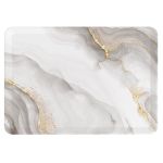 Δίσκος σερβιρίσματος από μελαμίνη, ορθογώνιος με σχέδιο λευκό μάρμαρο με χρυσές λεπτομέρειες και ματ φινίρισμα. Οι δίσκοι από μελαμίνη είναι ιδιαίτερα χρηστικοί, ανθεκτικοί και κατάλληλοι για τη χρήση σε φαγητό.