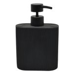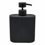 Πολυεστερικό dispenser με μοντέρνο σχεδιασμό και κομψό μαύρο ματ φινίρισμα. Διαθέτει ανάγλυφη υφή με ρίγες που προσδίδουν στυλ και αντιολισθητική λαβή. Ιδανικό για υγρό σαπούνι, συνδυάζει λειτουργικότητα και αισθητική, ταιριάζοντας σε κάθε μπάνιο.