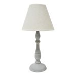 Φωτιστικό επιτραπέζιο μεταλλικό σε αντικέ γκρι χρώμα και υφασμάτινο μπεζ κωνικό καπέλο. Κατάλληλος τύπος λάμπας Ε14/40W max
