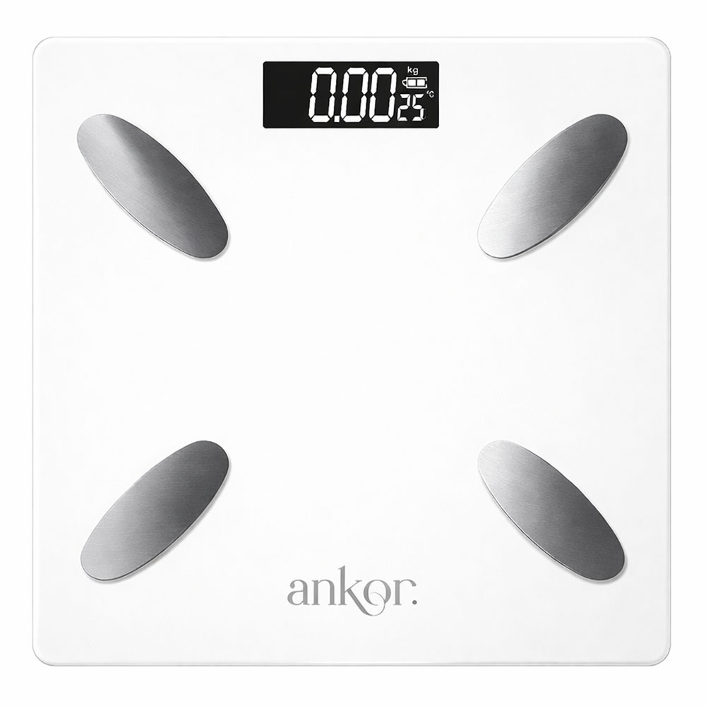 ΗΛΕΚΤΡΟΝΙΚΗ ΖΥΓΑΡΙΑ ΜΠΑΝΙΟΥ ΨΗΦΙΑΚΗ ΜΕ BLUETOOTH ΚΑΙ 8 ΜΕΤΡΗΣΕΙΣ ΣΕ ΑΣΠΡΟ ΧΡΩΜΑ ANKOR