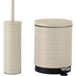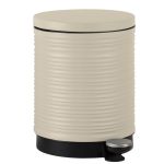 Κάδος απορριμμάτων μεταλλικός, στρογγυλός, σε μπεζ χρώμα με ματ φινίρισμα, ανάγλυφη ριγέ υφή και καπάκι με αυτόματο κλείσιμο. Πεντάλ υψηλής αντοχής, με σύστημα ανοίγματος με το πόδι και αφαιρούμενο εσωτερικό κάδο με χειρολαβή για εύκολο καθάρισμα.