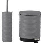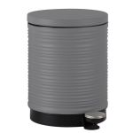 Κάδος απορριμμάτων μεταλλικός, στρογγυλός, σε γκρι χρώμα με ματ φινίρισμα, ανάγλυφη ριγέ υφή και καπάκι με αυτόματο κλείσιμο. Πεντάλ υψηλής αντοχής, με σύστημα ανοίγματος με το πόδι και αφαιρούμενο εσωτερικό κάδο με χειρολαβή για εύκολο καθάρισμα.