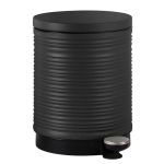 Κάδος απορριμμάτων μεταλλικός, στρογγυλός, σε ανθρακί χρώμα με ματ φινίρισμα, ανάγλυφη ριγέ υφή και καπάκι με αυτόματο κλείσιμο. Πεντάλ υψηλής αντοχής, με σύστημα ανοίγματος με το πόδι και αφαιρούμενο εσωτερικό κάδο με χειρολαβή για εύκολο καθάρισμα.