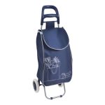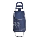 Καροτσάκι λαϊκής μεταλλικό με αδιάβροχο σάκο από πολυεστέρα, κλείνει με κορδόνι,διαθέτει πλαστική εργονομική λαβή κ έχει στο πίσω μέρος του τσεπάκι με φερμουάρ.Το χρώμα του είναι μπλε με σχέδιο ζαρζαβατικά κ η διάσταση της τσάντας 27x18x54εκ.