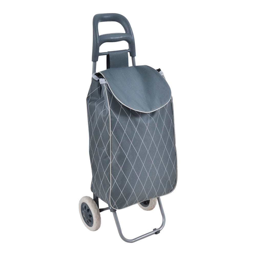 Καροτσάκι λαϊκής με μεταλλικό σκελετό και αδιάβροχο σάκο από πολυεστέρα, σχεδιασμένο για άνετη και πρακτική μεταφορά καθημερινών αγορών. Διαθέτει εργονομική πλαστική λαβή για εύκολο χειρισμό, ενώ ο σάκος κλείνει με κορδόνι ώστε τα αντικείμενα να μένουν σταθερά και προστατευμένα. Στο πίσω μέρος υπάρχει τσεπάκι με φερμουάρ για μικροαντικείμενα, όπως κλειδιά ή πορτοφόλι. Οι ρόδες του διευκολύνουν την κίνηση και κάνουν τη μεταφορά πιο εύκολη.Διάσταση τσάντας: 27x18x54εκ