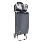 Καροτσάκι λαϊκής μεταλλικό με αδιάβροχο και ισοθερμικό σάκο 32lt, για την μεταφορά προϊόντων που απαιτείται η διατήρηση της θερμοκρασίας. Κλείνει με φερμουάρ και διαθέτει πλαστική εργονομική λαβή. Διαθέσιμο σε πράσινο και γκρι χρώμα.