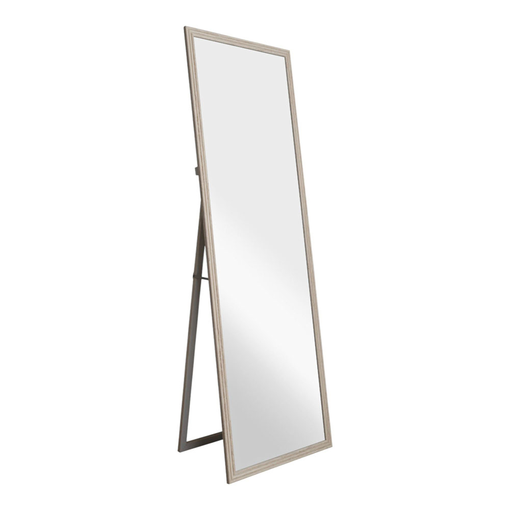 Ολόσωμος καθρέφτης δαπέδου με πλαστικό πλαίσιο σε μπεζ γκρι απόχρωση και ανάγλυφη υφή. Διαθέτει στήριγμα στο πίσω μέρος για σταθερή τοποθέτηση και μπορεί να τοποθετηθεί εύκολα σε υπνοδωμάτιο ή είσοδο, προσθέτοντας φωτεινότητα και κομψότητα στον χώρο.