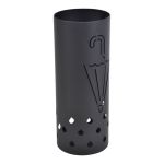 Ομπρελοθήκη μεταλλική στρογγυλή, σε μαύρο ματ χρώμα, με κομψή διάτρητη διακόσμηση ομπρέλας και σταγόνες βροχής. Διαθέτει μεταλλικό πάτο για σταθερότητα και αντοχή στην υγρασία, ενώ ο μοντέρνος σχεδιασμός της προσθέτει διακριτική αισθητική στην είσοδο του