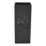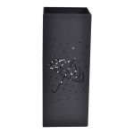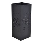 Ομπρελοθήκη μεταλλική τετράγωνη, σε μαύρο ματ χρώμα, με κομψή διάτρητη διακόσμηση ομπρέλας και σταγόνες βροχής. Ο στιβαρός μεταλλικός σκελετός της προσφέρει σταθερότητα και ανθεκτικότητα.