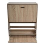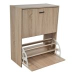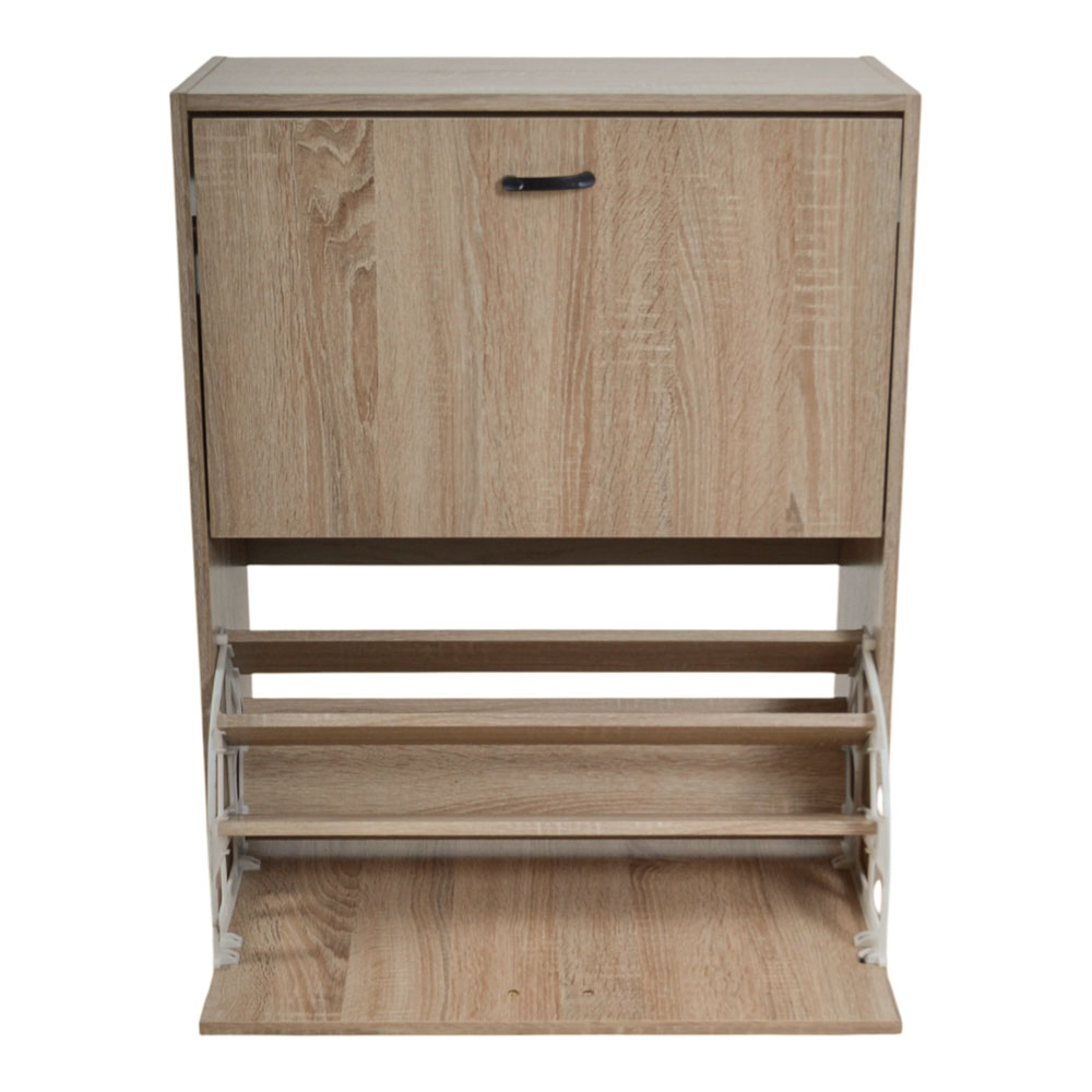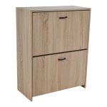 Ξύλινη παπουτσοθήκη με πρακτικό και λειτουργικό σχεδιασμό, ιδανική για την οργάνωση της εισόδου ή του διαδρόμου. Διαθέτει δύο ανακλινόμενες πόρτες που ανοίγουν έως κάτω, εξασφαλίζοντας εύκολη και άνετη τοποθέτηση των παπουτσιών. Το τριπλό εσωτερικό χώρισμα προσφέρει σωστή οργάνωση, ενώ το αυξημένο βάθος της επιτρέπει την αποθήκευση ακόμη και μεγάλων μεγεθών. Συνδυάζει εργονομία και αισθητική, αποτελώντας μια αξιόπιστη λύση για τακτοποιημένο χώρο. Στην συσκευασία περιλαμβάνονται οδηγίες συναρμολόγησης.