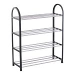 Ραφιέρα παπουτσιών 4 επιπέδων, με ανθεκτικό πλαστικό σκελετό από ανακυκλωμένο υλικό και μεταλλικές ράβδους. Μπορεί να φιλοξενήσει έως και 12 ζευγάρια παπούτσια, προσφέροντας πρακτική και οργανωμένη αποθήκευση.