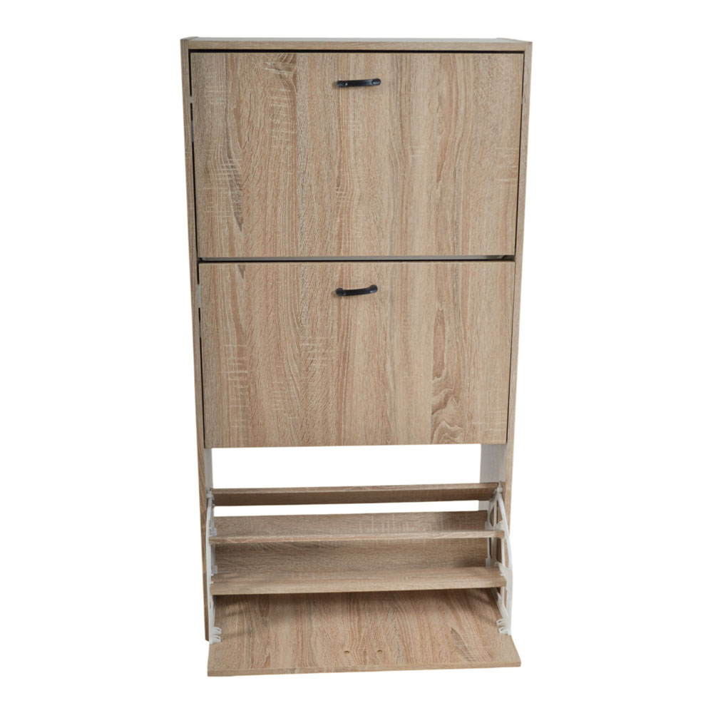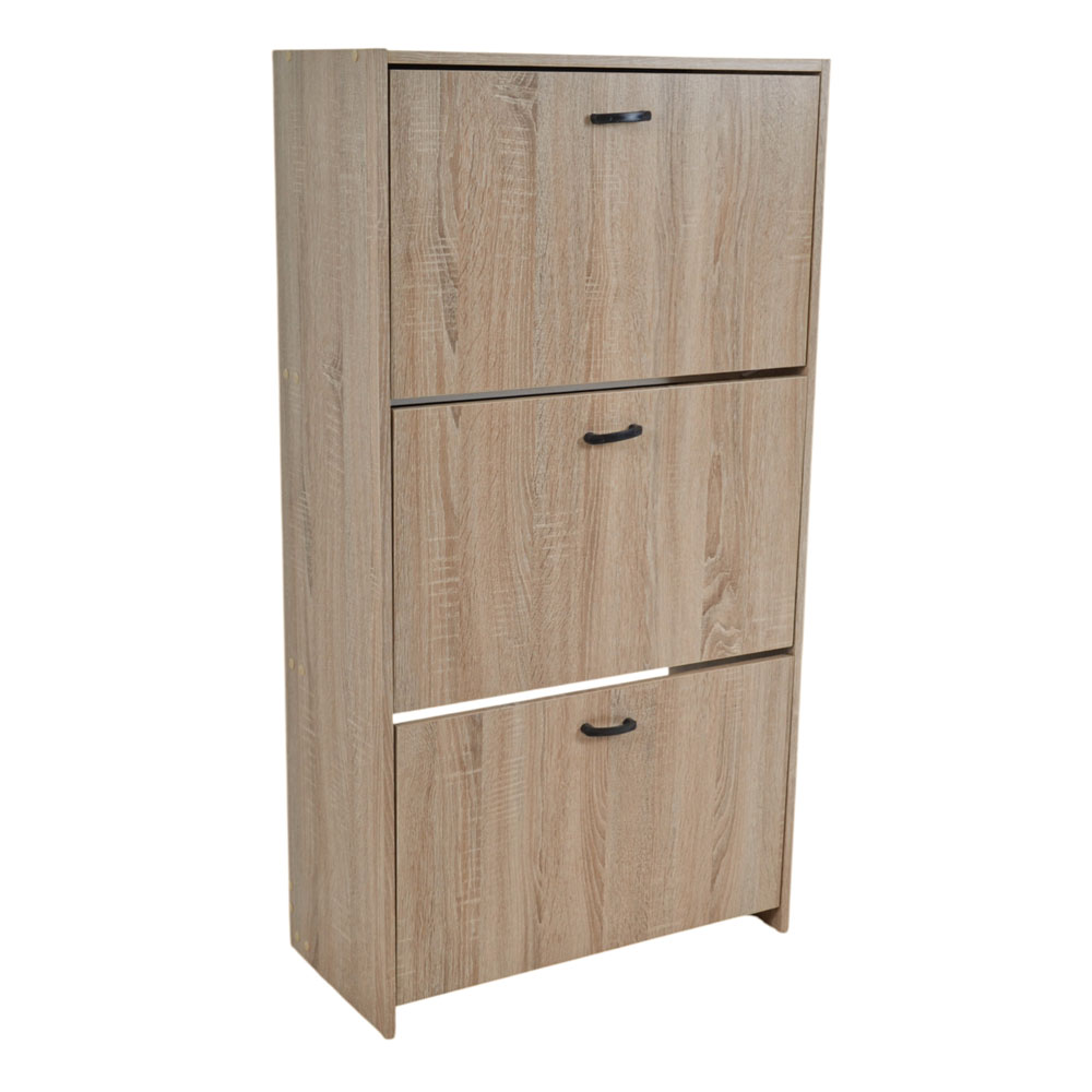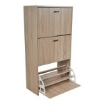Ξύλινη παπουτσοθήκη με πρακτικό και λειτουργικό σχεδιασμό, ιδανική για την οργάνωση της εισόδου ή του διαδρόμου. Διαθέτει τρείς ανακλινόμενες πόρτες που ανοίγουν έως κάτω, εξασφαλίζοντας εύκολη και άνετη τοποθέτηση των παπουτσιών. Το τριπλό εσωτερικό χώρισμα προσφέρει σωστή οργάνωση, ενώ το αυξημένο βάθος της επιτρέπει την αποθήκευση ακόμη και μεγάλων μεγεθών. Συνδυάζει εργονομία και αισθητική, αποτελώντας μια αξιόπιστη λύση για τακτοποιημένο χώρο. Στην συσκευασία περιλαμβάνονται οδηγίες συναρμολόγησης.