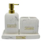 Ποτηροθήκη για οδοντόβουρτσες με χώρισμα, πολυεστερική, διακόσμηση εφέ άσπρο μάρμαρο και χρυσή επιγραφή. Αξεσουάρ μπάνιου εξαιρετικής ποιότητας με μοντέρνο και κομψό σχεδιασμό. Συνδυάστε τα ιδανικά με αντικείμενα της υπόλοιπης σειράς.