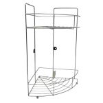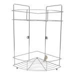 Ραφιέρα μπάνιου γωνιακή, μεταλλική σε ασημί χρώμα, δύο θέσεων, με δυνατότητα να κρεμαστεί και στον τοίχο.