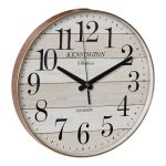Ρολόι τοίχου με πλαστικό πλαίσιο και καντράν που μιμείται ξύλινες σανίδες, διακοσμημένο με μαύρους αριθμούς και δείκτες. Το vintage σχέδιο προσθέτει μια ρετρό αίσθηση, ιδανικό για κάθε χώρο που επιζητά μια διαχρονική και κομψή διακοσμητική πινελιά.