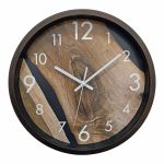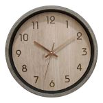 Ρολόι τοίχου με πλαστικό πλαίσιο και εντυπωσιακό καντράν που αποτυπώνει την υφή και την όψη φυσικού ξύλου. Ο συνδυασμός ζεστών ξύλινων αποχρώσεων με ευδιάκριτους αριθμούς και κομψούς δείκτες προσδίδει ιδιαίτερο χαρακτήρα.