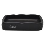 Σαπουνοθήκη πολυεστερική σε μαύρη ματ απόχρωση, με ανάγλυφη επιφάνεια που θυμίζει φυσική πέτρα. Διαθέτει διακριτική ένδειξη Soap, προσφέροντας κομψότητα και μοναδικό χαρακτήρα.
