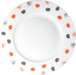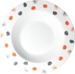 Σερβίτσιο φαγητού από ποιοτική πορσελάνη,στρογγυλό,με διακόσμηση πολύχρωμο πουα στο πλαίσιο.Το σετ περιλαμβάνει 6 πιάτα ρηχά 26εκ.,6 πιάτα βαθιά 21,5εκ. και 6 πιάτα φρούτου 19εκ.Κατάλληλο για χρήση στο πλυντήριο πιάτων κ τον φούρνο μικροκυμάτων.