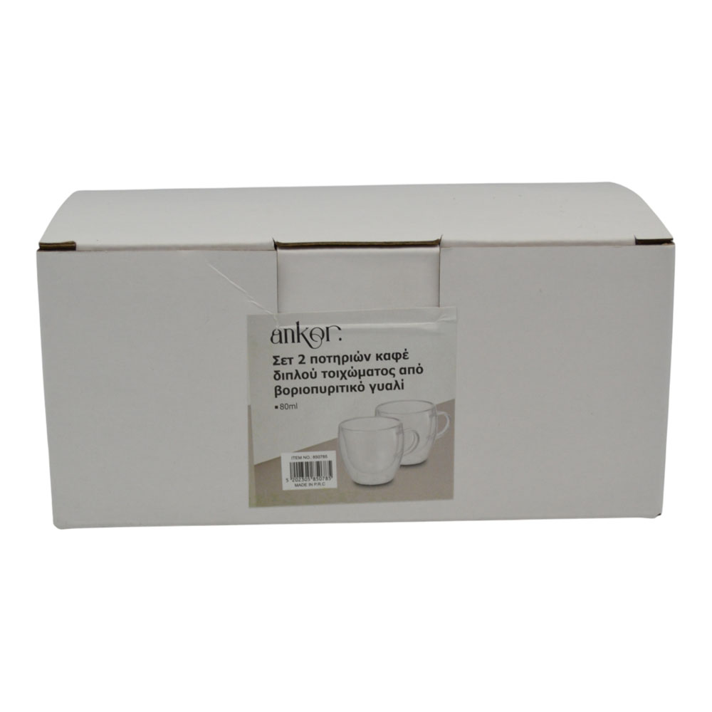 ΣΕΤ 2 ΦΛΙΤΖΑΝΙΑ ΚΑΦΕ ΔΙΠΛΟΥ ΤΟΙΧΩΜΑΤΟΣ ΑΠΟ ΒΟΡΙΟΠΥΡΙΤΙΚΟ ΓΥΑΛΙ 80ml ANKOR