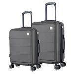 Σετ βαλίτσες από σκληρό ABS το οποίο περιλαμβάνει μια βαλίτσα καμπίνας 37x21x55εκ. και μια μεσαία βαλίτσα 41x26x65εκ. Διαθέτουν δυνατότητα επέκτασης του πλάτους τους κατά 5εκ., 4 διπλές ρόδες, τηλεσκοπικό χερούλι κ αριθμητική κλειδαριά για ασφάλεια.