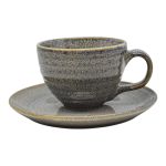 Σετ 6 φλυτζανιών καφέ με πιατάκι, κεραμικά, σε γκρι απόχρωση. Το ελαφρώς κυματιστό σχέδιο στην επιφάνεια χαρίζει φυσική, χειροποίητη αισθητική και διακριτική κομψότητα. Ιδανικά για καφέ ή άλλα ροφήματα, συνδυάζουν στυλ και πρακτικότητα.