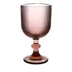 Σετ 6 κολονάτων γυάλινων ποτηριών 350ml με ανάγλυφη διακόσμηση και κομψό μωβ χρώμα. Ιδανικά για κρασί, νερό ή κοκτέιλ, με σταθερή βάση και σφαιρική λεπτομέρεια στο πόδι για άνετο κράτημα. Κατάλληλα για πλυντήριο πιάτων.