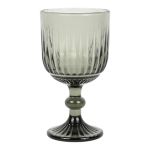Σετ 6 κολονάτων γυάλινων ποτηριών 350ml με ανάγλυφη διακόσμηση και κομψό smoke γκρι χρώμα. Ιδανικά για κρασί, νερό ή κοκτέιλ, με σταθερή βάση και σφαιρική λεπτομέρεια στο πόδι για άνετο κράτημα. Κατάλληλα για πλυντήριο πιάτων.