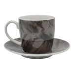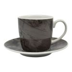 Σετ 6 τεμαχίων φλυτζάνια για καφέ με πιατάκια κατασκευασμένα από πορσελάνη, με σχέδιο εφέ ανθρακί μάρμαρο και σε συσκευασία δώρου. Σερβίρετε και απολαύστε τον αγαπημένο σας καφέ. Κατάλληλα για χρήση στο πλυντήριο πιάτων.