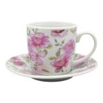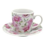 Σετ 6 τεμαχίων φλυτζάνια για καφέ με πιατάκια, κατασκευασμένα από πορσελάνη, με ρομαντικό σχέδιο ροζ λουλουδιών και σε συσκευασία δώρου. Σερβίρετε και απολαύστε τον αγαπημένο σας καφέ. Κατάλληλα για χρήση στο πλυντήριο πιάτων.