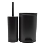 Σετ με κάδο απορριμμάτων και πιγκάλ, από ανοξείδωτο ατσάλι με μαύρο ματ φινίρισμα που δεν αφήνει δαχτυλικά αποτυπώματα. Ο κάδος έχει καπάκι με αυτόματο κλείσιμο κ αφαιρούμενο εσωτερικό κάδο για εύκολο καθάρισμα.Το πιγκάλ διαθέτει μαύρο ανθεκτικό βουρτσάκι