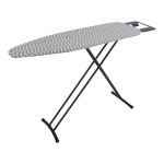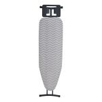 Σιδερώστρα με μεταλλικά μαύρα ματ πόδια,μεγάλη επιφάνεια σιδερώματος,ρύθμιση και ασφάλεια ύψους από 78 έως 95εκ.,θέση τοποθέτησης για το σίδερο και αντιολισθητικά ποδαράκια για μεγάλη ευστάθεια και σταθερότητα. Συσκευασία η κάθε μια σε κουτί.