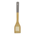 Ανθεκτική σπάτουλα από φυσικό μπαμπού, ιδανική για μαγείρεμα και σερβίρισμα. Διαθέτει εγκοπές για καλύτερη αποστράγγιση και αντιολισθητική λαβή για άνετο κράτημα. Φιλική προς τα αντικολλητικά σκεύη, μια πρακτική και οικολογική επιλογή για την κουζίνα σας.