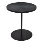 Στρογγυλό τραπεζάκι με ξύλινη επιφάνεια που αναδεικνύεται από τα φυσικά νερά του ξύλου και μαύρη ματ μεταλλική βάση για σταθερότητα. Ο διαχρονικός του σχεδιασμός το καθιστά ιδανικό για κάθε χώρο, συνδυάζοντας λειτουργικότητα και στυλ.