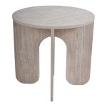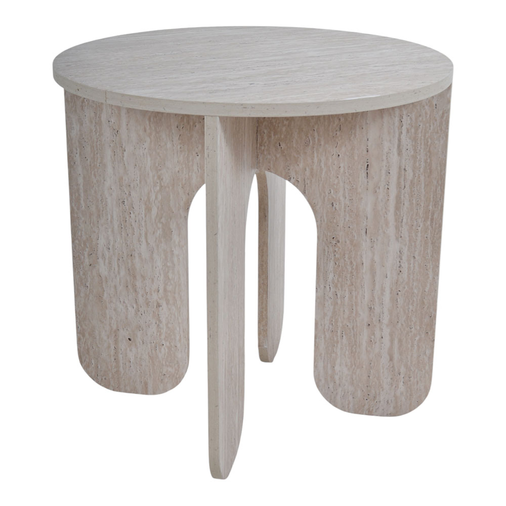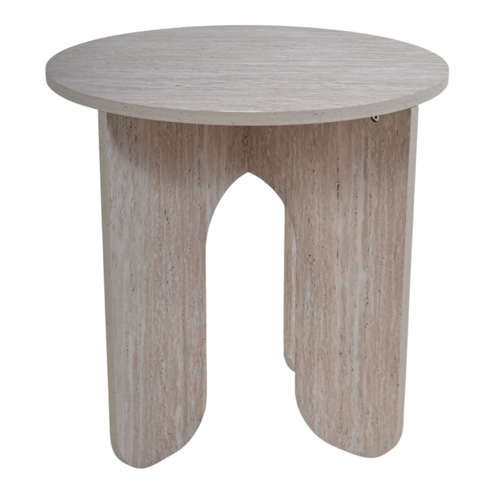 Τραπέζι ξύλινο στρογγυλό με όψη φυσικής πέτρας, που ξεχωρίζει για τον μίνιμαλ και σύγχρονο σχεδιασμό του. Η στιβαρή του βάση με καμπύλες γραμμές προσφέρει σταθερότητα, ενώ η ανοιχτόχρωμη επιφάνεια δημιουργεί μια αίσθηση κομψότητας και φυσικής αρμονίας στον χώρο. Ιδανικό για σαλόνι, καθιστικό ή επαγγελματικό χώρο. Μπορεί να συνδυαστεί αρμονικά με το άλλο τραπέζι της ίδιας σειράς, δημιουργώντας ένα ενιαίο και ισορροπημένο σύνολο διακόσμησης.