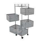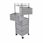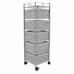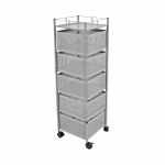 Τρόλευ αποθήκευσης μεταλλικό, πολυμορφικό με πέντε καλάθια τα οποία ανοίγουν και κλείνουν για ευκολία κατά τη χρήση του. Διαθέτει μεταλλικό στοπ στις δύο από τις τέσσερις ρόδες και είναι ιδανικό για μεταφορά και οργάνωση πραγμάτων.