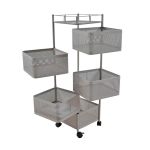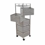 Τρόλευ αποθήκευσης μεταλλικό, πολυμορφικό με πέντε καλάθια τα οποία ανοίγουν και κλείνουν για ευκολία κατά τη χρήση του. Διαθέτει μεταλλικό στοπ στις δύο από τις τέσσερις ρόδες και είναι ιδανικό για μεταφορά και οργάνωση πραγμάτων.