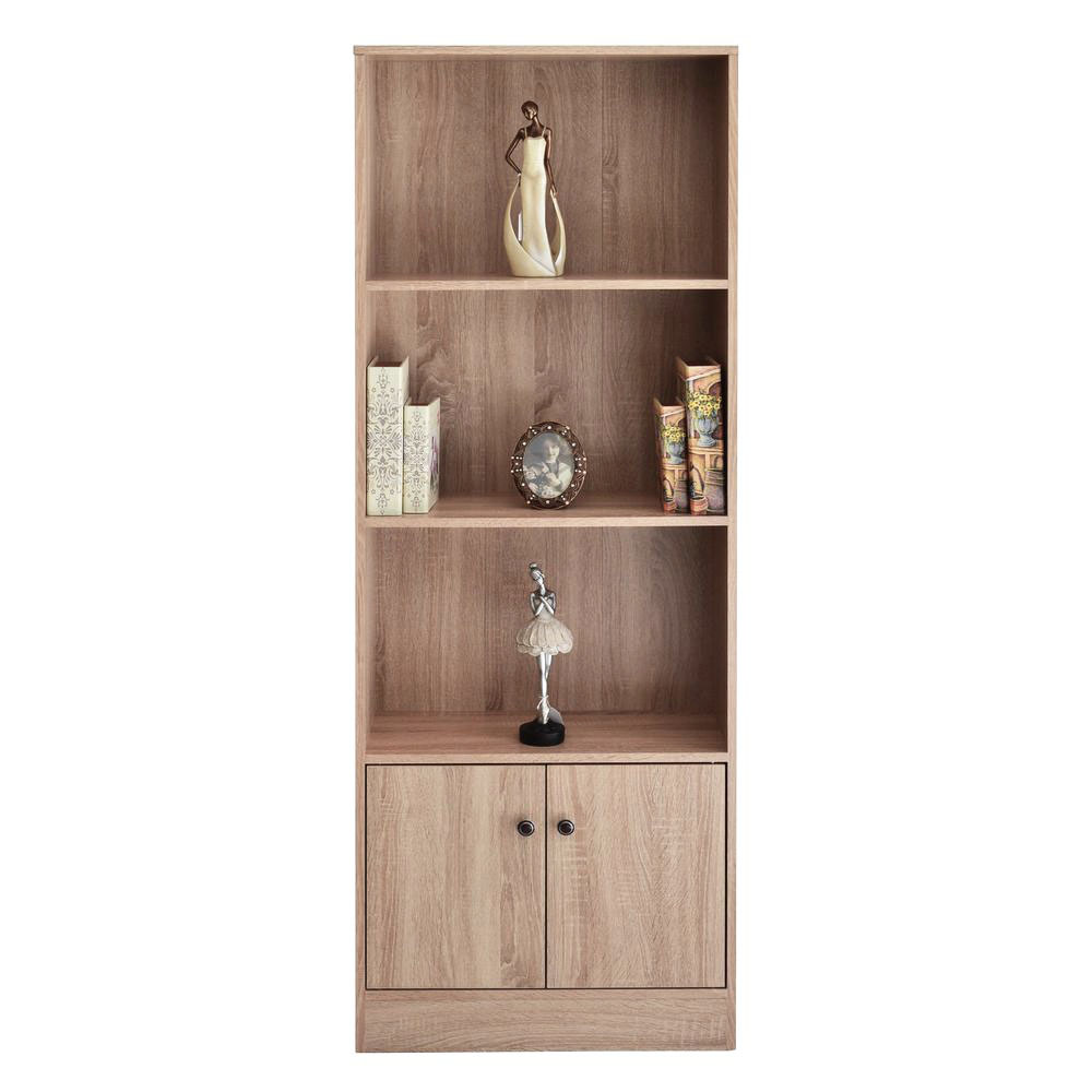 Ξύλινη βιβλιοθήκη με κομψό και λειτουργικό σχεδιασμό, ιδανική για την οργάνωση βιβλίων και διακοσμητικών. Διαθέτει ανοιχτά ράφια για εύκολη τοποθέτηση αντικειμένων, ενώ στο κάτω μέρος περιλαμβάνει ντουλάπι με πόρτες για επιπλέον αποθηκευτικό χώρο. Ο φυσικός τόνος ξύλου προσδίδει ζεστασιά και ταιριάζει εύκολα σε κάθε στυλ διακόσμησης. Σταθερή και πρακτική, αποτελεί ιδανική επιλογή για σαλόνι, γραφείο ή υπνοδωμάτιο. Η συσκευασία του αποτελείται από δύο κιβώτια. Διάσταση πρώτου: 44x32x4εκ. διάσταση δεύτερου: 179x28x7,7εκ.