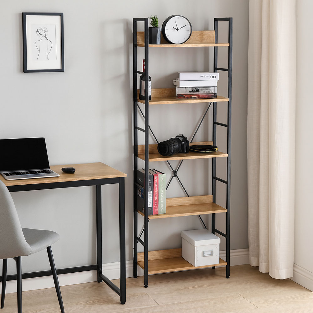 ΒΙΒΛΙΟΘΗΚΗ ΜΕ 5 ΞΥΛΙΝΑ ΡΑΦΙΑ ΚΑΙ ΜΑΥΡΟ ΜΕΤΑΛΛΙΚΟ ΣΚΕΛΕΤΟ 60x24x144εκ. ANKOR