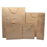 Χάρτινη τσάντα δώρου craft για μπουκάλι υψηλής ποιότητας σε καφέ χρώμα και χειρολαβή από κορδόνι.