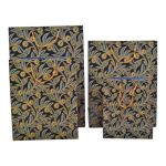 Χάρτινη τσάντα δώρου με πλαστικοποίηση υψηλής ποιότητας, σχέδιο φύλλα σε μπλε χρώμα με χρυσές λεπτομέρειες και χειρολαβή με κορδόνι.