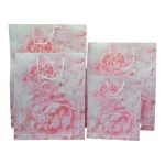 Χάρτινη τσάντα δώρου με πλαστικοποίηση υψηλής ποιότητας, σχέδιο ροζ παλ τριαντάφυλλα και χειρολαβή με κορδόνι.