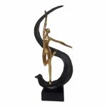 Χρυσή πολυεστερική φιγούρα σε εντυπωσιακή στάση χορού, που εναρμονίζεται με μαύρο καμπυλωτό πλαίσιο. Η ανάγλυφη υφή και η αρμονία των κινήσεων αναδεικνύουν ένα κομψό διακοσμητικό με έντονη αισθητική παρουσία.