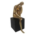 Μοντέρνα φιγούρα αφαιρετικής αισθητικής, καθιστή με έντονη εκφραστικότητα. Η χρυσή απόχρωση τονίζει το γλυπτικό ύφος και προσδίδει κομψότητα σε κάθε χώρο.