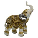 Διακοσμητικός ελέφαντας πολυεστερικός σε άσπρο χρώμα με χρυσή διακόσμηση σε έθνικ στυλ. Ξεχωριστά αντικείμενα για να στολίσετε το σπίτι σας ή να τα προσφέρετε σαν δώρο στα αγαπημένα σας πρόσωπα.