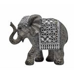 Διακοσμητικός ελέφαντας πολυεστερικός σε γκρι χρώμα με ασημί λεπτομέρειες σε έθνικ στυλ. Ξεχωριστά αντικείμενα για να στολίσετε το σπίτι σας ή να τα προσφέρετε σαν δώρο στα αγαπημένα σας πρόσωπα.