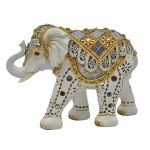 Διακοσμητικός ελέφαντας πολυεστερικός σε άσπρο χρώμα με χρυσές και ασημί λεπτομέρειες σε έθνικ στυλ. Ξεχωριστά αντικείμενα για να στολίσετε το σπίτι σας ή να τα προσφέρετε σαν δώρο στα αγαπημένα σας πρόσωπα.