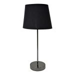 Φωτιστικό επιτραπέζιο μεταλλικό σε μαύρο φιμέ χρώμα και υφασμάτινο μαύρο καπέλο. Κατάλληλος τύπος λάμπας Ε14/40W max