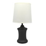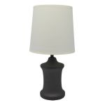 Πορτατίφ κεραμικό με μοντέρνο σχεδιασμό σε μαύρο χρώμα και υφασμάτινο εκρού καπέλο. Κατάλληλο για λαμπτήρα Ε14 ΜΑΧ 40W, ο οποίος δεν περιλαμβάνεται στη συσκευασία.