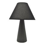 Πορτατίφ κεραμικό σε μαύρο χρώμα με σαγρέ υφή και υφασμάτινο μαύρο καπέλο. Κατάλληλο για λαμπτήρα Ε14 ΜΑΧ 40W, ο οποίος δεν περιλαμβάνεται στη συσκευασία.