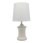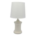 Πορτατίφ κεραμικό με μοντέρνο σχεδιασμό και υφασμάτινο καπέλο σε εκρού χρώμα. Κατάλληλο για λαμπτήρα Ε14 ΜΑΧ 40W, ο οποίος δεν περιλαμβάνεται στη συσκευασία.